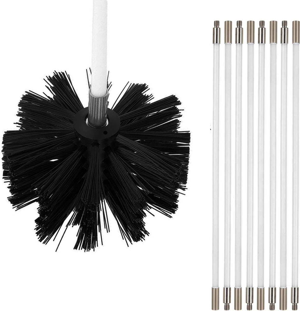 Met een lengte van maar liefst 9 meter en flexibele stelen die elke bocht kunnen weerstaan, kan de borstel gemakkelijk elk vuil losmaken en voorkomt u verstoppingen en brand. De nylon haren van de borstel zijn hard en flexibel, wat betekent dat ze alle vuil en roet kunnen verwijderen zonder beschadiging aan te brengen aan de pijp.