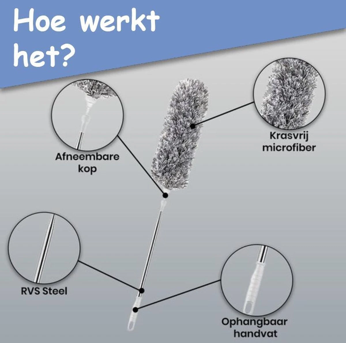 ✅Overal bij kunnen tijdens het stof afdoen? Met deze uitschuifbare plumeau kan dat! Zo hoef je nooit meer het plafon of dat hoge raamkozijn over te slaan. Met deze handige, uitschuifbare plumeau kun je jouw huis gemakkelijk schoonmaken. Zo is de extra lange steel uitschuifbaar tot maar liefst 2.8 Meter! Dit maakt de plumeau ideaal voor het verwijderen van hoge spinnenwebben of stof bovenop de kast.