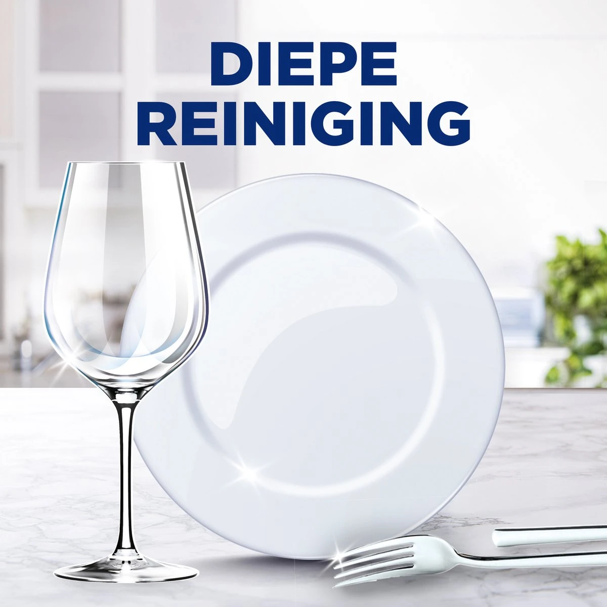 De capsuletechnologie met drie compartimenten verwijdert alle soorten voedselresten – zonder dat je je vaat hoeft voor te spoelen. Het poeder en de gel werken om residu los te maken en te verwijderen. De Powerball beschermt het glas en helpt de glans van je servies te behouden. Dit alles met 25% minder chemicaliën dan onze klassieke Finish compacte poedertabletten**.