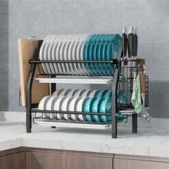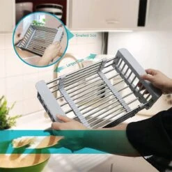 Kitch&Life Afdruiprek Oprolbaar – Mat Zwart – Pannenonderzetter – Afdruipmat – Keukenrek 3-in-1